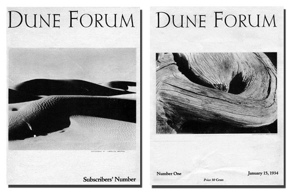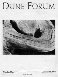 A magazine on art, literature, and politics (with the occasional treatise on nudity) Dune Forum was published in the early 1930s in the artists’ colony of Moy Mell, on the central California coast. Its founding editor, Gavin Arthur, aimed to provide a view point that would “express the creative thought of America looking not toward Europe but toward the West.” Arthur founded the loose clan of artists, writers, philosophers, misfits and hermits known as the ‘Dunites’ who lived in the Oceano dunes in a few cabins and driftwood shacks. Pauline Schindler (cultural critic, and wife of architect R.M. Schindler), was associate editor. (For more on her involvement, see John Crosse’s post on her life and work).